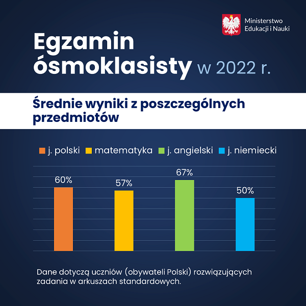Średnie wyniki egzaminu ósmoklasisty 2024 z matematyki i języka.